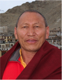 Lopon Dhundup Sonam ist einer der einflussreichsten älteren Mönche der Drikung-Kagyu-Tradition in Ladakh. Bereits in sehr jungen Jahren wurde er Mönch im Kloster Sharchukhul und widmete sein ganzes Leben dem Studium und der Praxis der buddhistischen Lehren. Lopon Dhundup Sonam ist einer der bekanntesten und hoch geschätzten Thangka-Maler der Drikung-Kagyu-Tradition in unserer Zeit. Er lernte die Kunst der Thangka-Malerei als einer der Hauptschüler von Tsering Wangdus, einem renommierten buddhistischen Künstler aus Ladakh. Dieser wurde 1999 mit der Padma Shree Auszeichnung der indischen Regierung für seine besonderen Fähigkeiten in der Kunst des Thangka Malens geehrt. Zurzeit ist Lopon Dhundup Sonam der Leiter des Sharchukhul Klosters. Mit der Unterstützung durch S.H. Drikung Kyabgön Chetsang schrieb er ein Buch über die Kunst der Thangka-Malerei, wie sie insbesondere in der Drikung-Kagyu-Tradition überliefert wird und leistete damit einen entscheidenden Beitrag zu deren Erhalt.